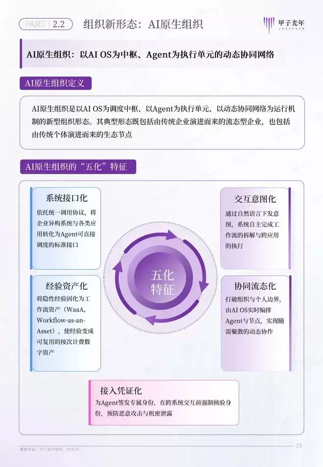 为探索组织形态演进的新趋势,甲子光年智库提出了代理式AI时代的新型组织形态——AI原生组织。