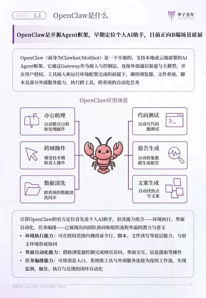 OpenClaw是开源Agent框架,早期定位个人AI助手,目前正向B端场景延展