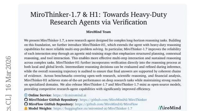 说到人工智能,大多数人可能都有这样的体验:AI助手能够快速回答简单问题,但一旦遇到需要深入研究、多步骤推理的复杂任务时,往往会力不从心。就像一个聪明但缺乏经验的实习生,虽然知识渊博,却不知道如何系统性地解决真正困难的问题。MiroMind团队最新发布的MiroThinker-1.7和MiroThinker-H1研究成果,正是为了让AI真正具备像资深研究专家一样的思维能力。