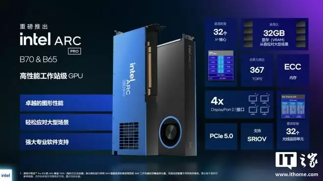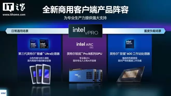 IT之家 3 月 25 日消息,英特尔今日正式发布基于第三代酷睿 Ultra 处理器的 vPro 平台。同时,英特尔还带来了面向高端市场的锐炫 Pro B70 和 B65 独立显卡,并宣布至强 600 工作站处理器面向零售市场上市。
