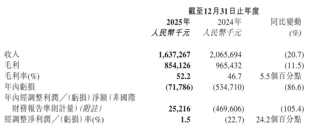 运动科技企业Keep(03650)发布的2025年度业绩报告显示,公司全年实现营业收入16.37亿元,非国际财务报告准则下经调整净利润达2522万元,成功实现从亏损4.7亿元到盈利的跨越式转变。毛利率提升至52.2%,较上年同期增长5.5个百分点,连续三年保持扩张态势。