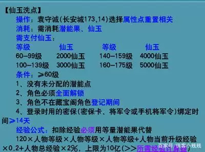3.仙玉重置:仙玉重置属性和转门派的花费是一样的,无论是仙玉消耗还是经验消耗都是一致的,各等级具体消耗如图所示: