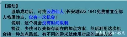 4.渡劫后免费洗点的机会:人物角色渡劫成功之后,可以获得一次免费洗点的机会,也仅有一次机会,无时间限制,具体如图所示: