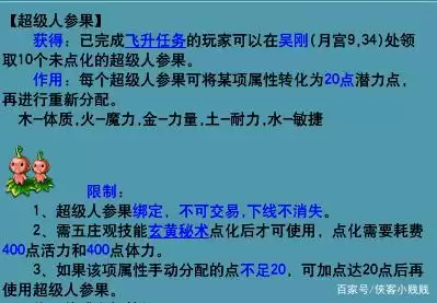 2.超级人参果:飞升后的玩家可以找吴刚(月宫9.34)领取10个超级人参果,具体用途及功能如图所示:
