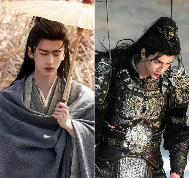 《逐玉》中的他前期是寄人篱下的赘婿言正,娇柔隐忍,切大号后化身身披重甲、冷冽杀伐的武安侯。
