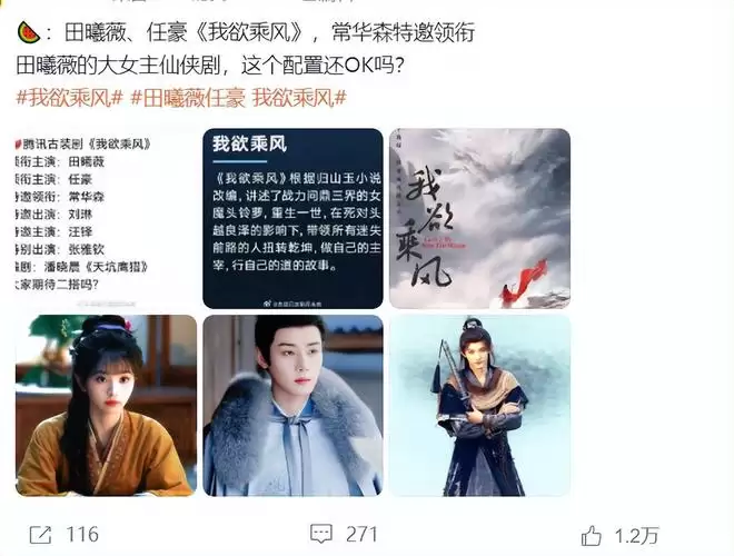 如果田曦薇真的要接《我欲乘风》,对她来说,绝对是非常大的挑战,但如果能搭档任豪,肯定会吸引很多网友,毕竟很多人都在磕她和任豪的CP。