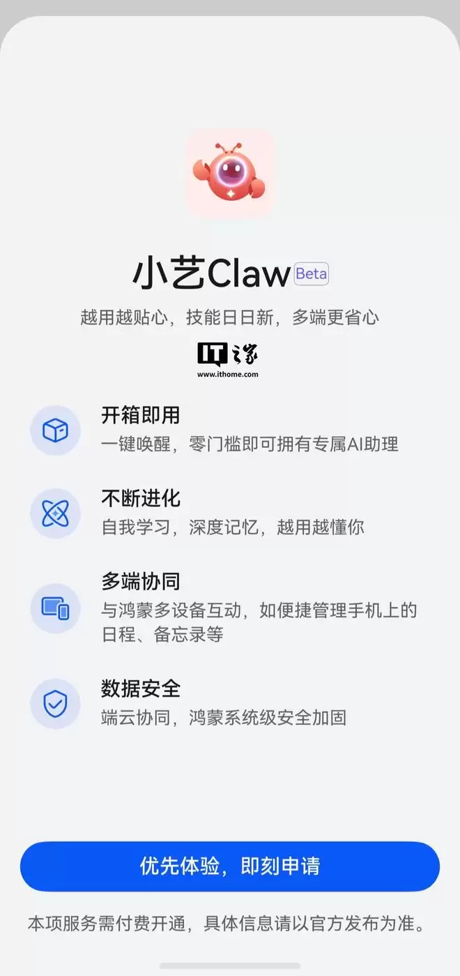 10、华为鸿蒙手机“龙虾”小艺 Claw 开启预约:适配 HarmonyOS 6,支持手机、平板设备