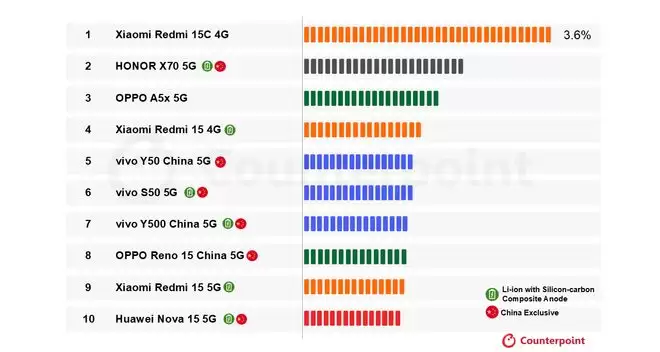 11、CounterPoint:1 月国产品牌包揽全球 ≥6000mAh 手机畅销榜前十