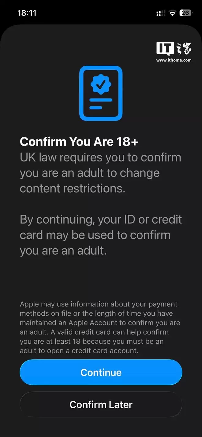 13、苹果 iOS 26.4 在英国引入强制年龄验证,数百万 iPhone 用户需证明已满 18 岁