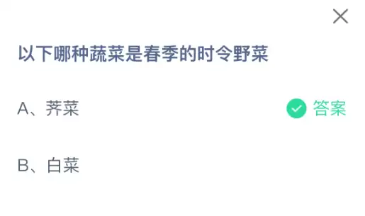 1、题目:以下哪种蔬菜是春季的时令野菜