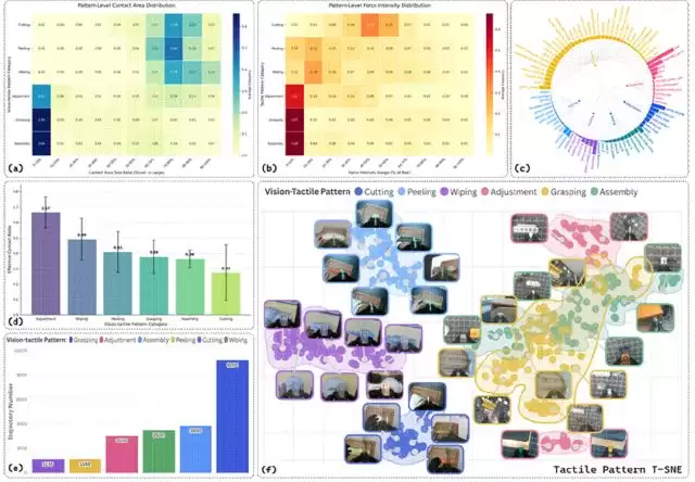 这是迄今为止规模最大、质量最高的视触觉操作数据集之一,目前已收录2万余条操作轨迹,覆盖近百类任务和百余种物体,并将接触模式系统性分为擦拭、削皮、切割、抓取、装配以及手内调整六类,在数据采集过程中严格保证视觉、触觉与动作的高精度同步,并保留了原始传感器频率。