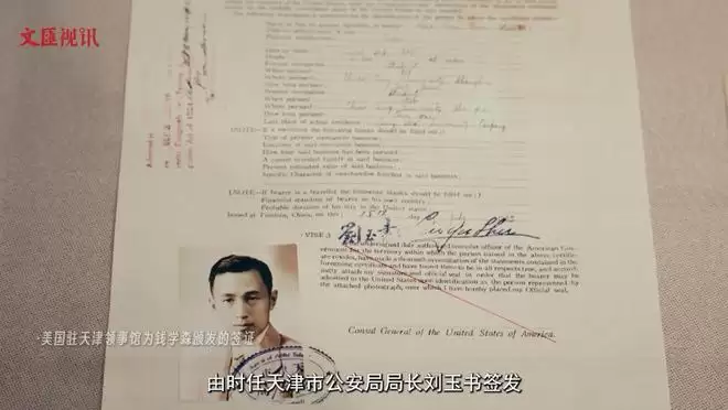 这是钱学森的中华民国护照,1935年7月,由时任天津市公安局局长刘玉书签发,护照上写明,钱学森将取道日本,前往美国留学。