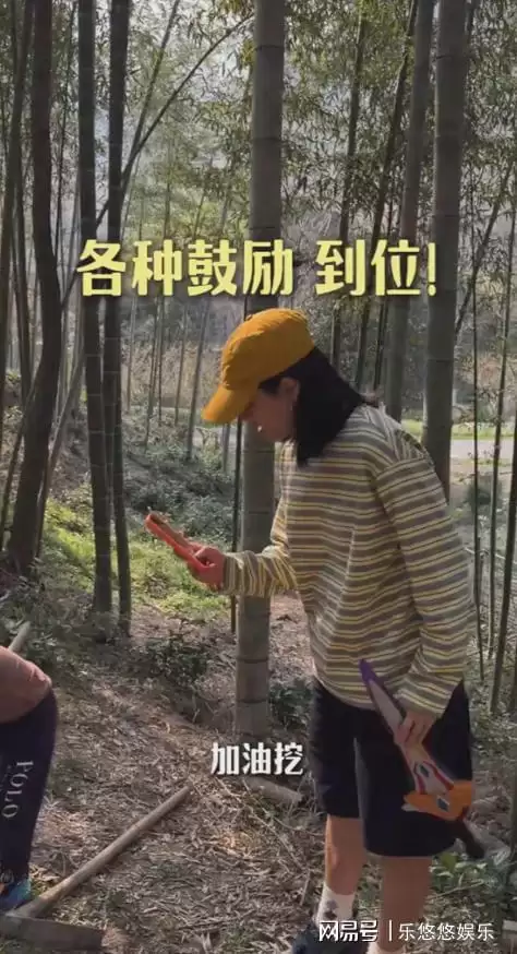 周一围带娃挖笋,45岁朱丹穿短裤状态好