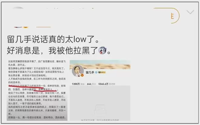 随着争议加大,目前留几手微博账号已经被禁止关注,而禁关意味着账号也被禁言了,可见恶劣影响有多大。