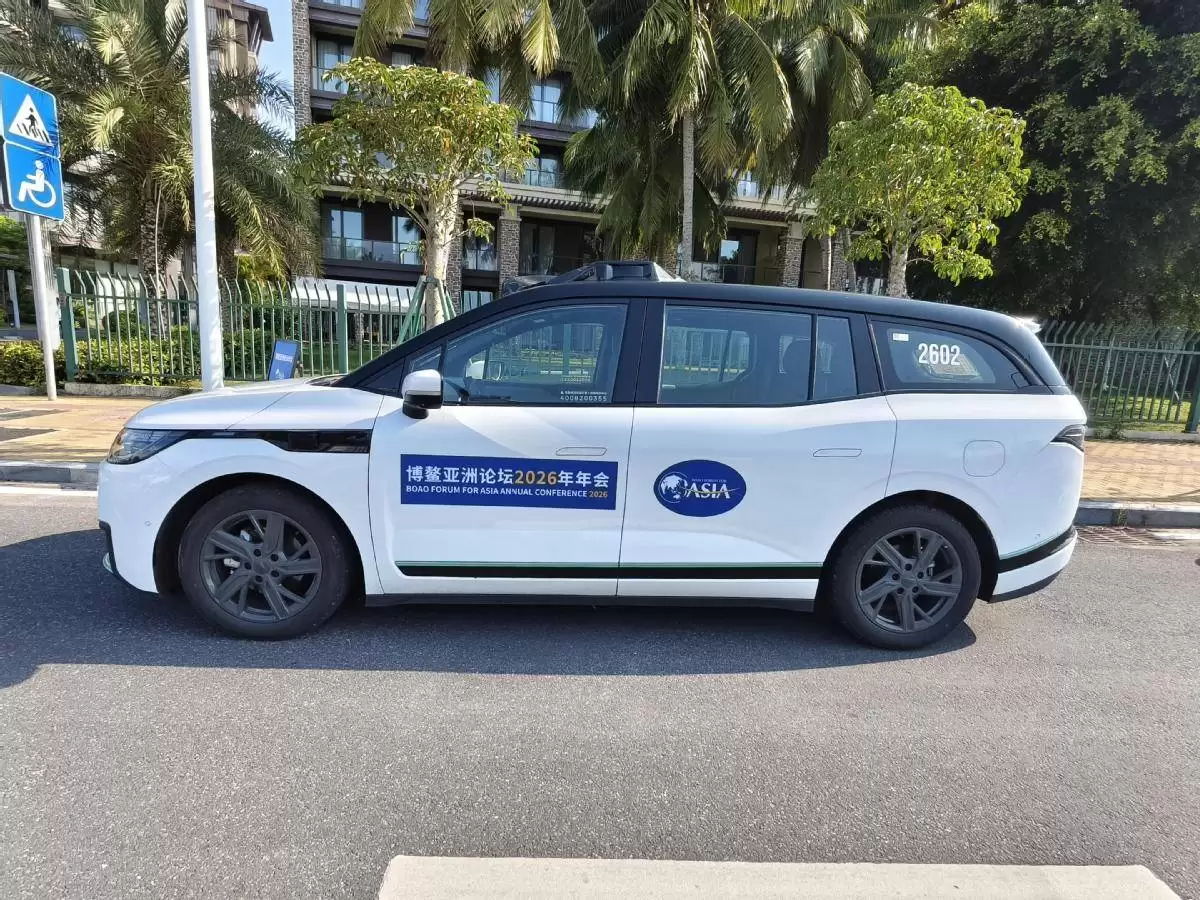 在博鳌滨海大道上,一辆车身印有“博鳌亚洲论坛2026年年会”字样的白色汽车平稳行驶,方向盘自主转动却无驾驶员操控。这是海南旅投旗下海汽集团投入的无人驾驶车队中的一员。年会期间,10台无人驾驶车辆穿梭于4个接待酒店与中国(海南)南海博物馆之间,为嘉宾提供专属接驳服务。参会代表只需扫描参会手册中的二维码,即可在指定点位预约车辆,实现无缝出行。