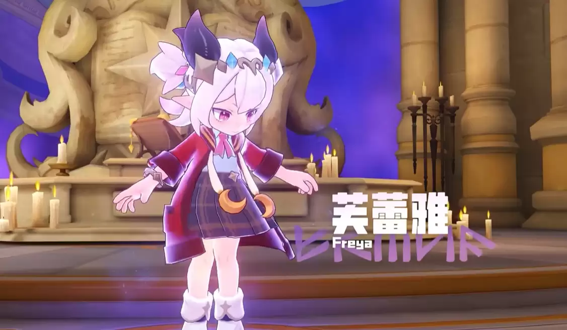 时间的车轮滚滚向前,两百年之后,野心勃勃的黑魔法师恩佐为了获得强大的力量,开始蓄意破坏古老的封印,企图夺取蕴含无穷能量的“巨星之结”。随着封印的松动,沉睡在里面的芙蕾雅感觉到危险,她的残魂从封印中挣脱出来,回到了魔法学院。但是漫长的封印岁月使她大部分的记忆被抹去,只留下了对曾经伟大精灵王和校长的记忆,以及一个执着的本能念头,那就是要把学院的绩点都消化掉。因此,在剧情前期,玩家所看到的芙蕾雅就是整天追着绩点跑、呆萌可爱的萝莉形象,反差萌使无数玩家为之倾心。