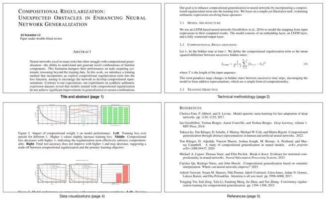 被研讨会评审看上的那篇论文,研究的是深度学习里的一个负向结果,正好契合那个叫 ICBINB 的研讨会主题。这篇论文由AI科学家在无模板模式下生成,从头到尾没有人类修改过。它从选题、设计实验、跑代码、出图表、写 LaTeX,全部是自己完成的。