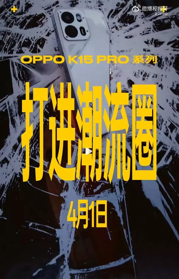 快科技3月26日消息,今日,OPPO宣布,全新OPPO K15 Pro系列将于4月1日发布。