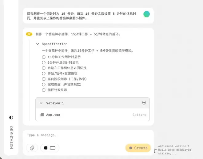 整个流程需要你在 playground.nothing.tech 的网页端完成,手机端和桌面浏览器都可以访问。你输入一段文字描述,AI 生成一个初版组件预览,然后可以继续提要求修改,也可以回退到历史版本。完成后提交,等待审核,审核通过即可发布并安装到手机主屏上。