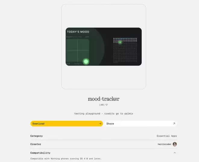 Playground 不是一个 App,也不是一个功能模块。更准确的描述是:Nothing 搭起来的一个由用户驱动的创作与发行平台。用户可以在上面用自然语言描述自己想要的小工具,Essential App Builder 的 AI 帮你把它变成一个真实可运行的组件,提交审核之后发布到 Playground 社区,供所有人下载使用。
