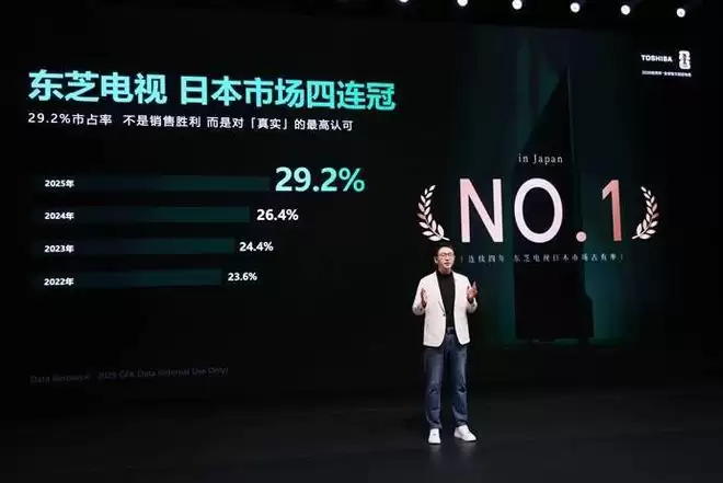 这种节奏让东芝在日本市场独树一帜。日本用户对音画质的挑剔程度全球有名,并且还有索尼这样的强力对手,在这个市场拿第一,比在其他地方要难得多。但东芝做到了,而且连续四年市占率第一。2025年的市占率达到29.2%,领先第二名将近十个百分点。在日本市场的大幅领先,也反映出东芝在高端电视领域掌握了技术话语权。