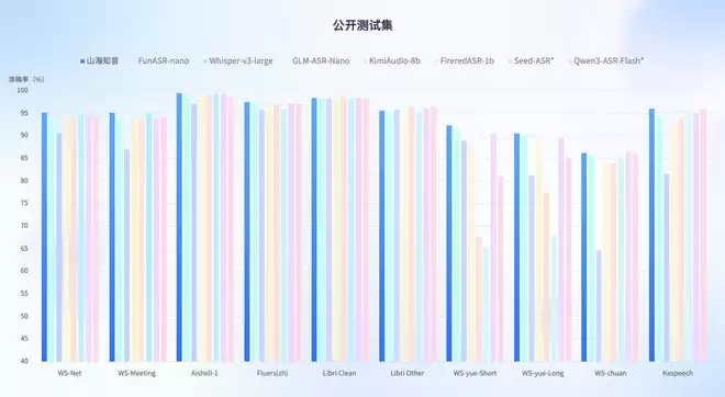 ▲山海·知音2.0在公开测试集显现领先语音识别能力