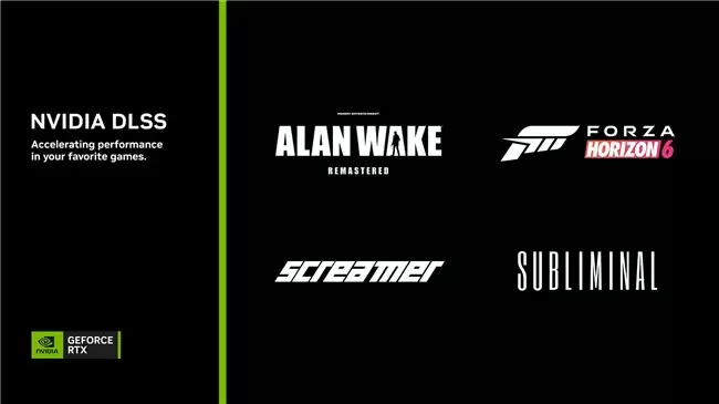 《极限竞速:地平线 6》(Forza Horizon 6)和 Screamer 将首发支持 DLSS 4 多帧生成,《忆蚀》(Subliminal)也将于 3 月 31 日推出。
