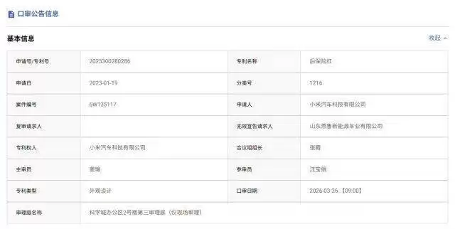 小米汽车上市后不久便卷入一场引人关注的专利争议,涉事方竟是一家仅有20名员工、主营低速电动车的山东企业——山东燕鲁新能源车业有限公司。据公开信息显示,该公司于近日向国家知识产权局提出申请,要求宣告小米汽车三件外观设计专利无效,涉及后保险杠、前保险杠及前大灯等关键设计元素,而这些部件恰是小米SU7、YU7车型的核心特征。