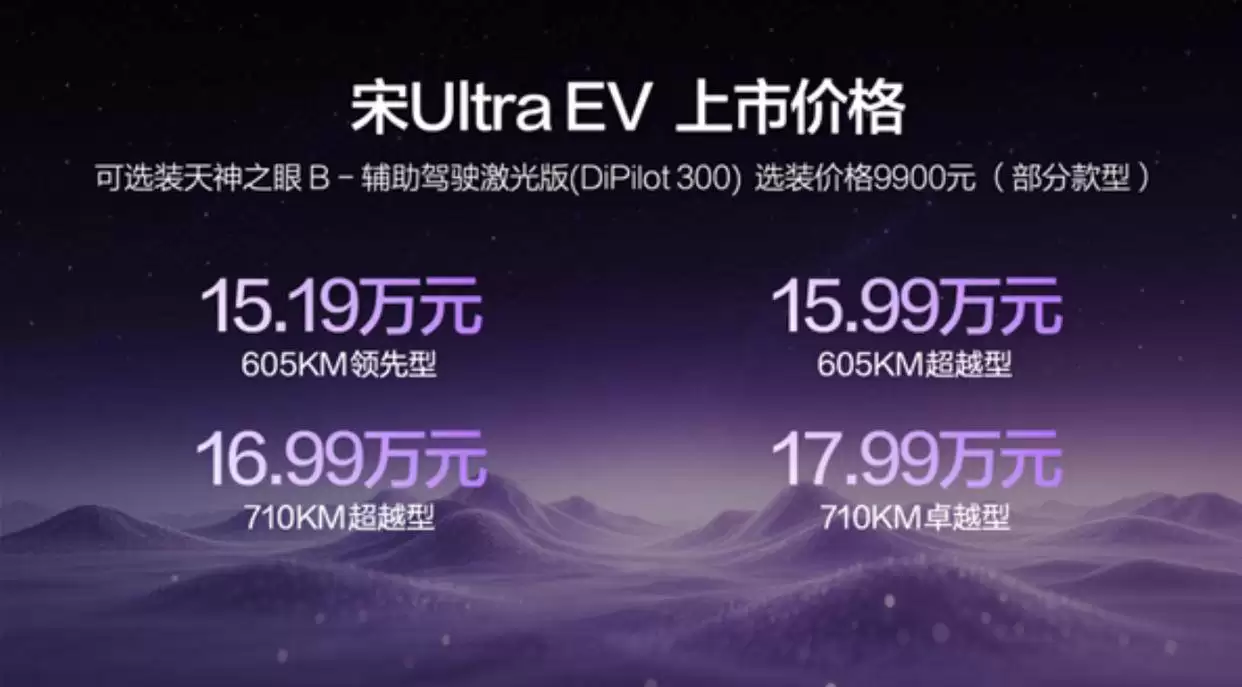 比亚迪宋Ultra EV上市:B级纯电SUV配超闪充,15.19万起