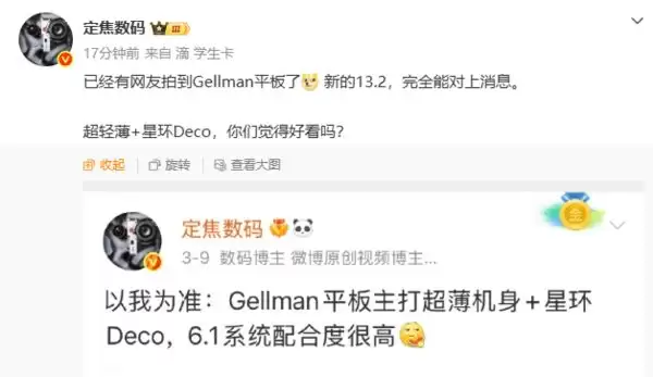 华为13.2寸平板星环镜头实拍图曝光 全场景设计揭晓
