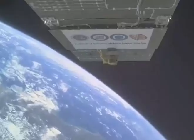 卫星正在运行,其上黄色物体为核科一号载荷。