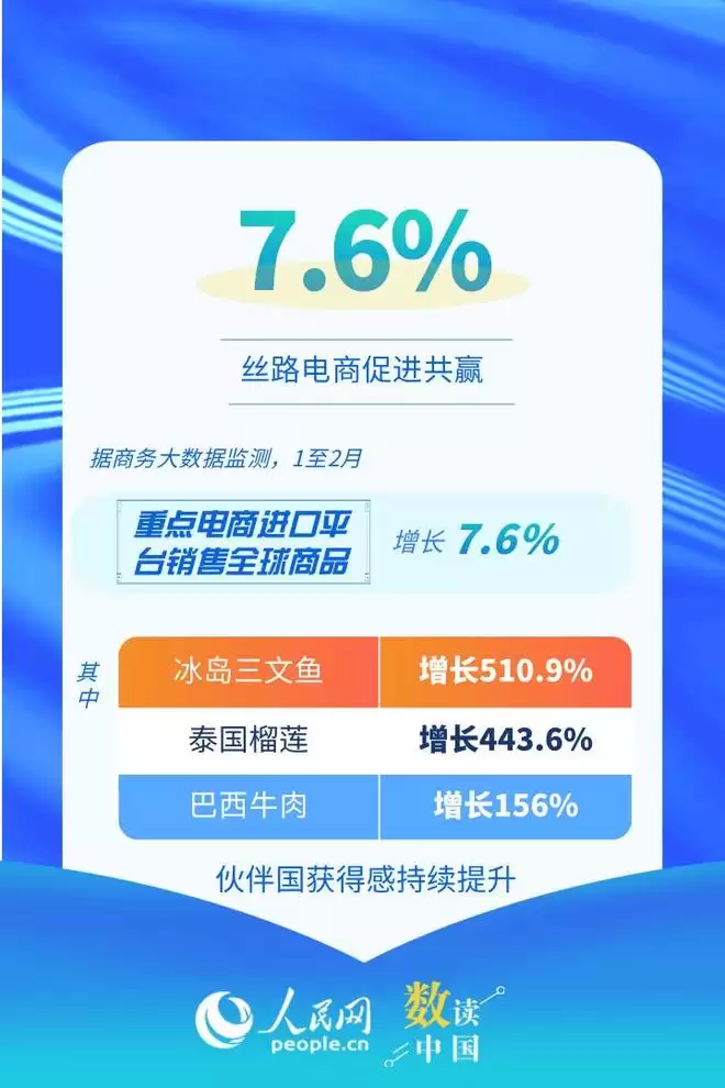 智能眼镜、擦窗机器人网络零售额分别增长183.5%和130.8%、重点电商进口平台销售全球商品增长7.6%……1至2月,我国电子商务稳定发展,数字消费稳中向好,产业电商推动数智化转型,丝路电商提升惠全球品牌效应,高质量发展实现良好开局。
