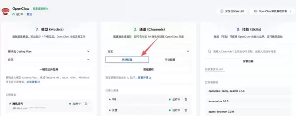 通过腾讯云Lighthouse部署 OpenClaw 的用户,还有一种更便捷的方式:在通道配置中选择「快捷配置」,扫码就能完成绑定。