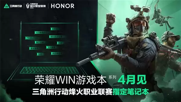3月27日,随着《三角洲行动》烽火职业联赛春季赛的火热举行,荣耀与《三角洲行动》联合发布了宣传海报,荣耀WIN游戏本以“三角洲烽火职业联赛指定笔记本”的身份高调亮相,并且将于4月正式发布,以顶级战力进军高端游戏本市场。