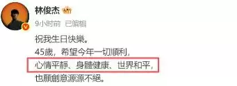 还是先祝林俊杰 45 岁生日快乐,也希望新的一岁里,他真的能像自己期许的那样,好好照顾自己,平安健康。毕竟对粉丝和爱他的人来说,没有什么比他的身体更重要。