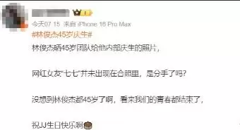 45岁林俊杰庆生自曝生命加速,小21岁女友缺席引分手猜测