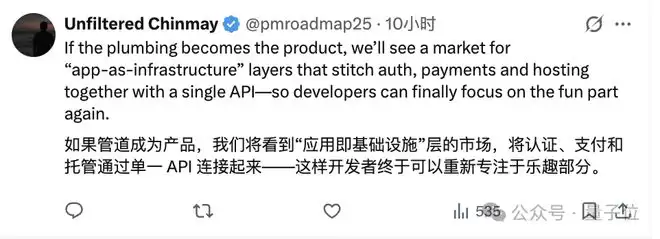 一体化平台非常重要,最好有产品能直接把整套部署能力打包好,让大家直接能开箱即用。(附议!目前市面上这些开发工具,几乎给AI用的,不太像是给人用的,最好能的方法是让AI自己去调用和配置。与其整一堆复杂配置流程框架,不如用简单架构更省事,基础前端+简单后端,反而更适合快速做应用。