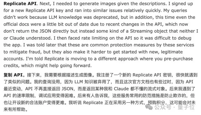 卡帕西想做图像生成,自己又去注册了一个Replicate API key,结果几乎是同一套坑再来一遍;