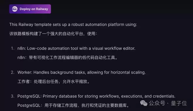 主打的也是一个「开箱即用」,它已经能把一些多服务模板自动连好,甚至自动通过环境变量把服务串起来,减少用户的手动配置~
