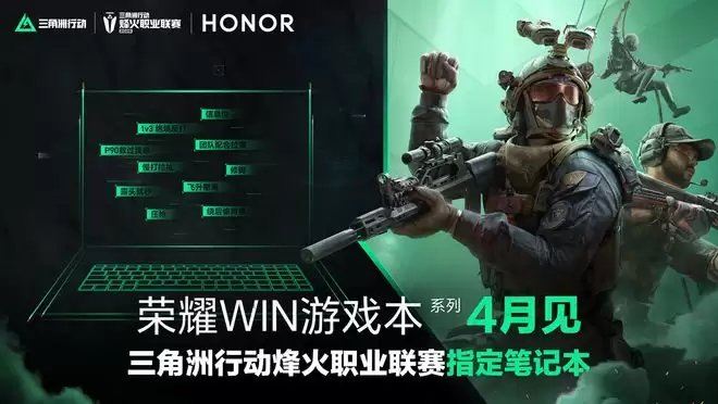 3 月 27 日,在最新宣传海报中,荣耀 WIN 游戏本以三角洲行动烽火职业联赛指定笔记本的身份正式亮相,并官宣定档今年 4 月份,迅速引发电竞玩家与数码消费市场的高度关注。