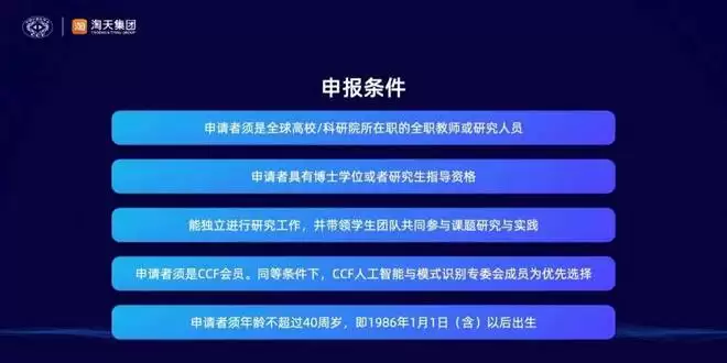 CCF和淘天集团将共同邀请来自学术界、工业界的专家组成技术委员会,并担任项目评委共同评审,专家评审主要依据以下标准:申请课题的价值,创新性和可行性;提交的proposal与课题需求匹配度;申请者的执行计划及交付成果的价值;申请者(及团队)的学术水平和科研能力等。