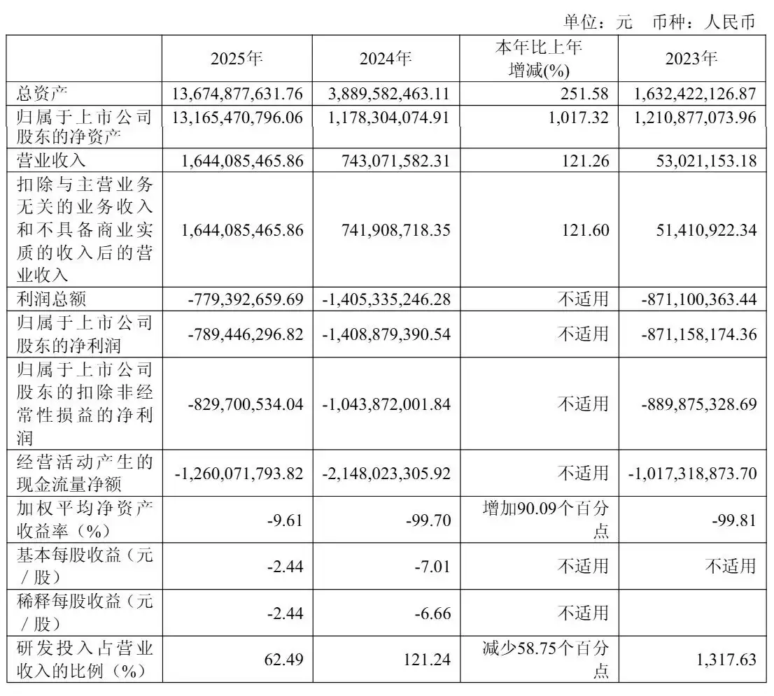 沐曦股份2025年净亏损为7.89亿元,上年同期的净亏损为14亿元;扣非后净亏损为8.3亿元,上年同期的扣非后净亏损为10.44亿元。