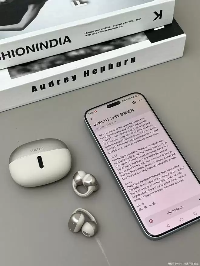 耳夹式耳机天生有个短板:声场偏窄,听起来像声音被“夹”在耳边。但哈趣Ace1通过双核动态声场增强技术,把虚拟声场进一步扩展,很大程度上打破了这种物理局限,配合杜比级AI原声音质,听现场录音或者看电影的时候,那种空间感和氛围感确实有点超出预期。