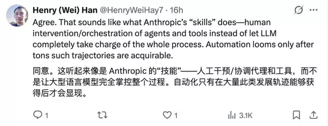 林俊旸的这一思考与论点获得了Grok研发工程师Ethan He等诸多专业人士的认同和支持。