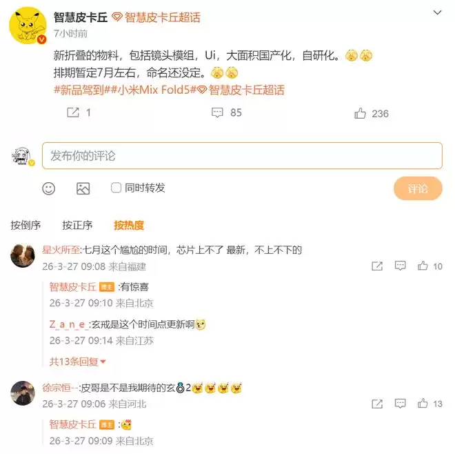 这个时间点很关键,三星Z Fold 8通常在8月发布,华为Mate X系列也在下半年,MIX Fold 5选在7月,可以抢在竞品之前收割一波关注度。