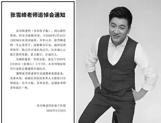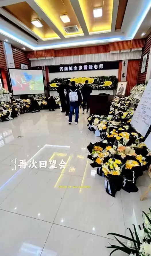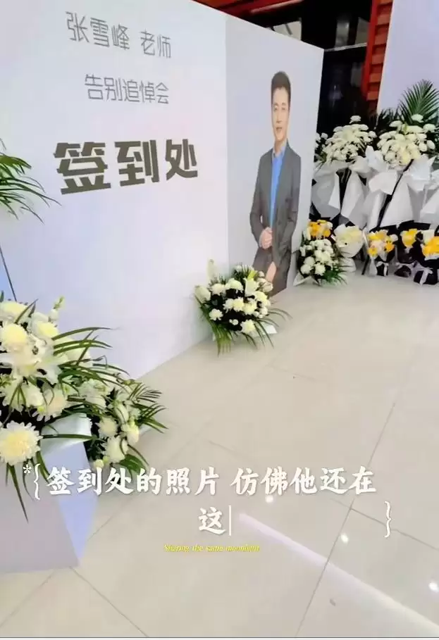 在另一边,张雪峰的遗照静静地摆放着,是一张身穿西装的彩色照片,看到这张遗像,不少网友都泪目了,他还那么年轻,走得太突然了。