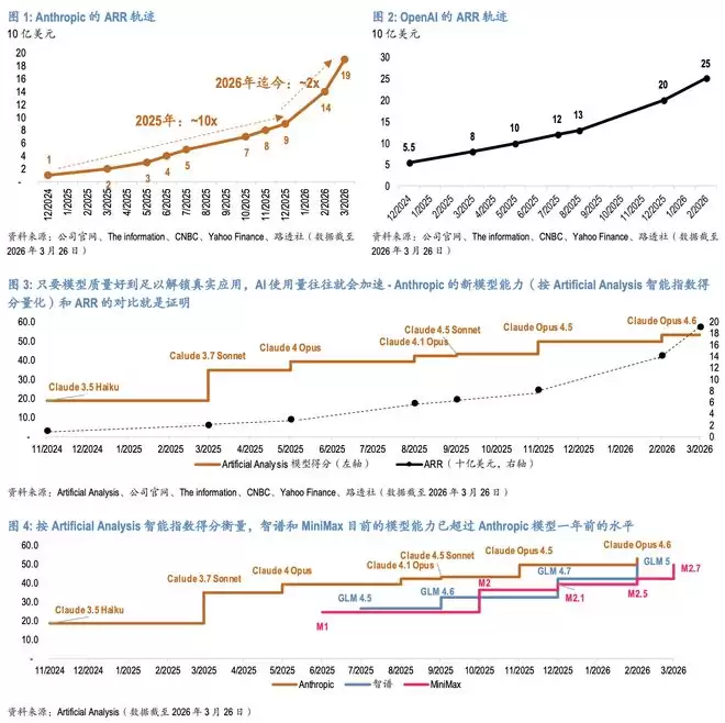 美国市场已提供先例。据报告援引的数据,Anthropic的年度经常性收入(ARR)从2024年12月的10亿美元快速增至2026年3月的190亿美元,15个月内增加约19倍。