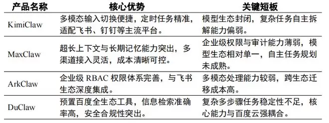 表2 云端部署类OpenClaw产品能力对比