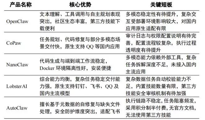 表1 本地部署类OpenClaw产品能力对比