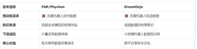 今年2月,英伟达发布了DreamDojo——一个基于大规模视频训练的通用机器人世界模型。对比PAR/PhysGen与DreamDojo,会发现两条路线在核心技术理念上惊人一致。